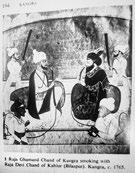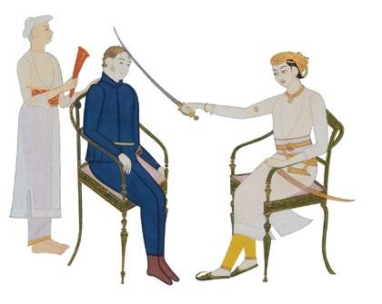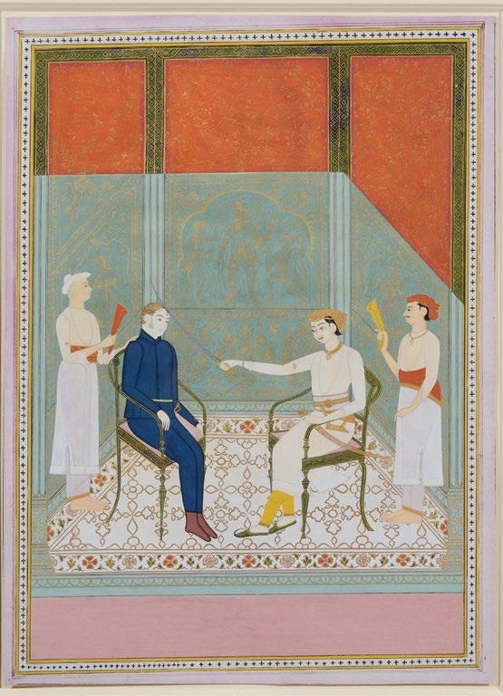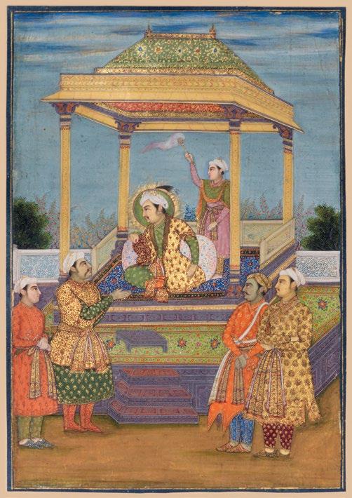 Fig. 1 The Mughal artist Balchand, detail from the painting in the PadshahnamaofJahangir welcomingShahJahanonhis return from the Mewar Campaign in 1615