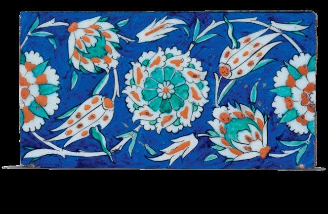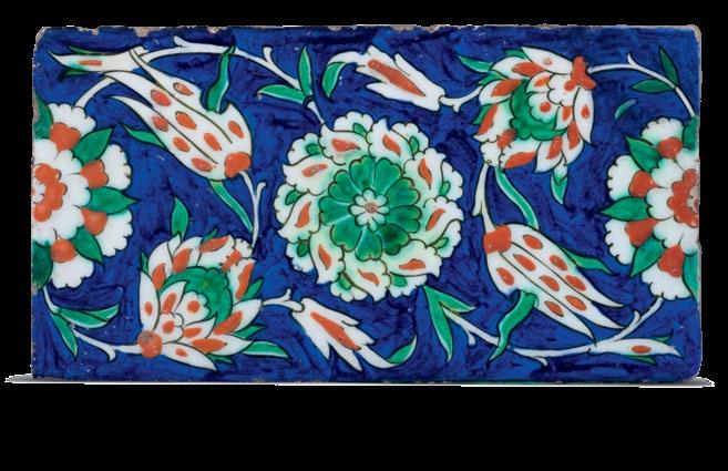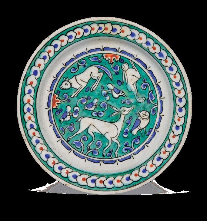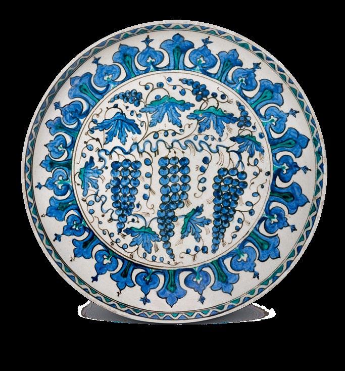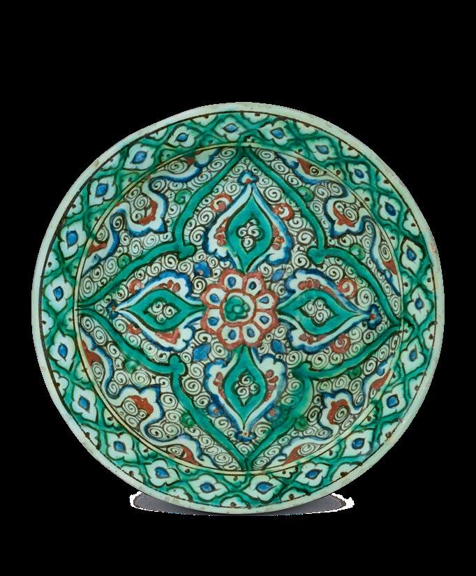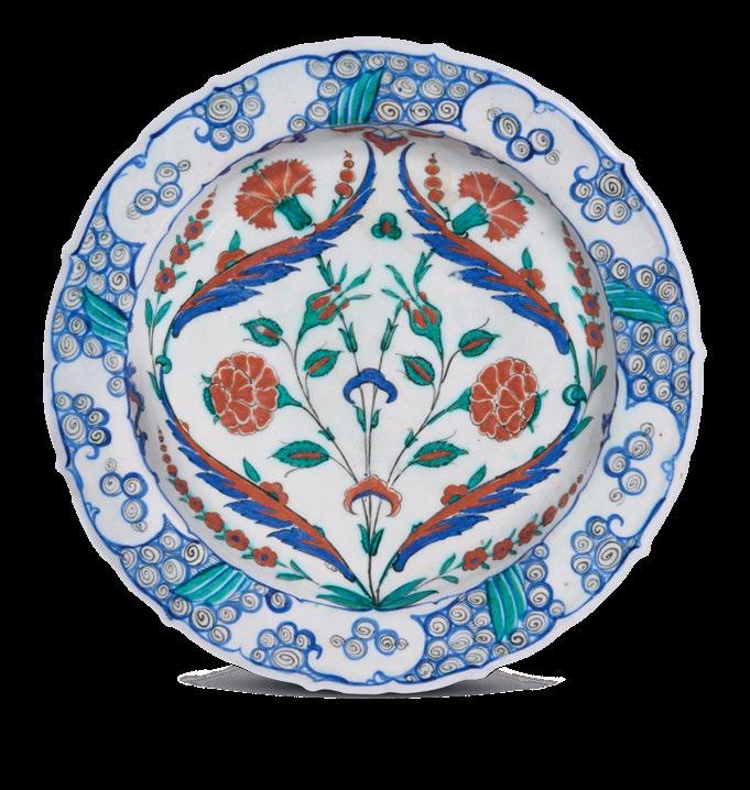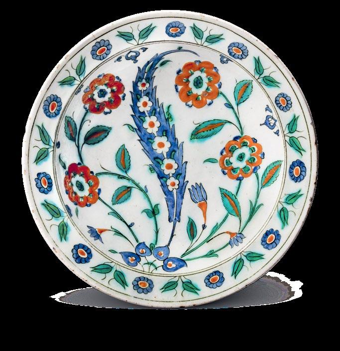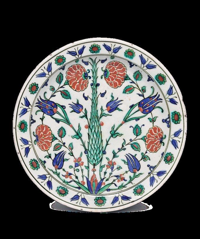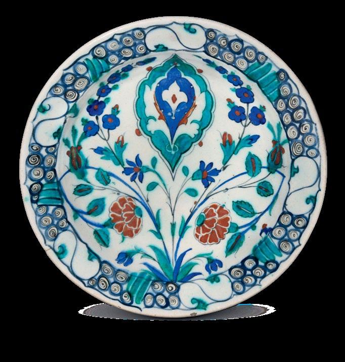 The present dish is a fine and important example of Iznik ceramic production, displaying an iconic aesthetic and presence with its vibrant colours and brilliant finish.