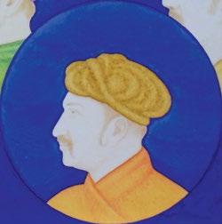 Silent Whispers in Turquoise, commissioned for TEFAF 2026, comprise portraits of Mughal emperors, artists and nobility in haloes of rich lapis lazuli or a blend of malachite and turquoise. Khayyam’s meticulous technique is evident in the vibrant colouring, “in a portrait, I might apply seven layers of different colours, allowing each layer to dry completely before adding the next. Only after all layers are applied does the final colour fully emerge.”