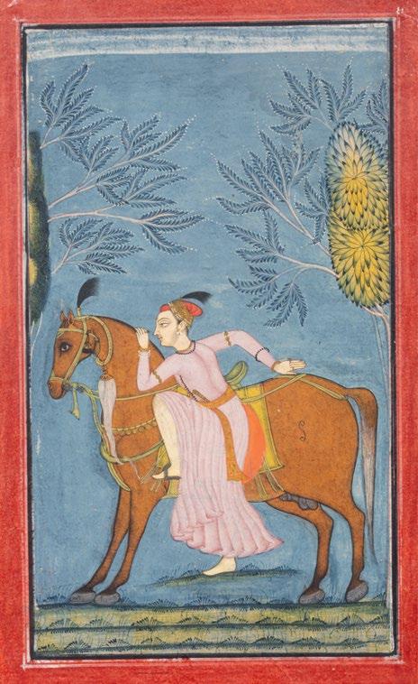 There are written accounts and visual depictions of Mughal princes and emperors riding elephants. There is a wonderfully detailed painting of a very young Akbar riding an elephant, signed by the court artist Zayn al-Abidin, dated 1609-1610, in the Staatliche Museen zu Berlin, Museum für Islamische Kunst (Ident. No:I.4598 fol. 2v), please see the link, https://recherche.smb.museum/detail/1521446/kaiser-akbar-dressiert-einen-ele fantenbullen?language=de&question=akbar&limit=15&sort=relevance&control s=none&objIdx=1 In this painting, Akbar’s elephant bears striking resemblances to ours.