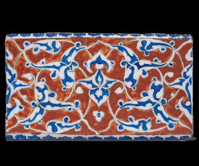 The small group of sixteenth-century Iznik ceramics presented here represents one of the most refined artistic achievements of the Ottoman world. Produced in the town of Iznik (ancient Nicaea) in northwestern Anatolia, these wares were created for imperial and elite contexts during the heyday of Ottoman ceramic production, distinguished by a luminous fritware body, a rich palette of cobalt blue, turquoise, emerald green, and bole red, and designs that combine geometric precision with vibrant natural forms.