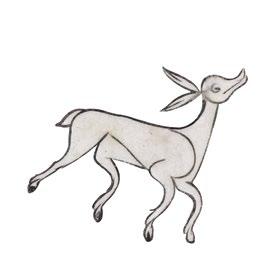Elephants from the imperial Mughal elephant stables (the Filkhana) were decorated with roundels around their rear legs which were sometimes gilt metal roundels, used to control untameable elephants. The pointy tips of their ivory tusks were cut and adorned with thick rings. And they were decorated with embroidered covers and head caps. The present elephant displays all