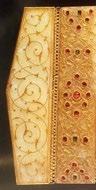 A painting in the Museum of Islamic Art, Qatar, (MS.51.200) depicts a Mughal prince riding a royal elephant with a crimson caparison, decorated with gold medallions, framed by a thick black border, comparable to the caparison of the present elephant. Fig.2 See, Asok Kumar Das, “The Elephant in Mughal Painting”, in Flora and Fauna in Mughal Art, ed. Som Prakash Verma, Marg Publications, Bombay, 1999, p. 50.