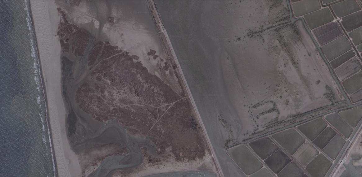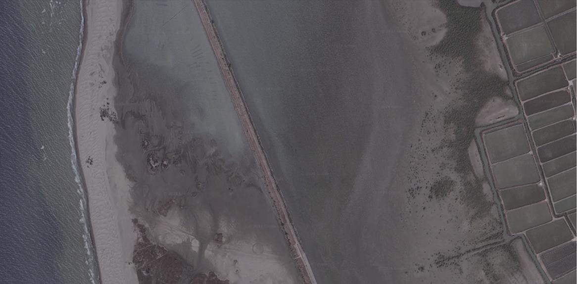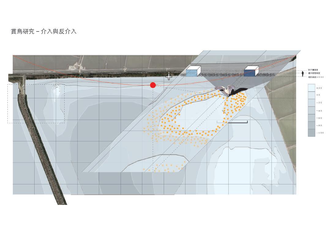 In Tainan's Qigu Seawall, which serves as a boundary between the Black-faced Spoonbill Reserve and the lagoon, a 1:1 installation reads the non-binary nature of this boundary, attempting to identify the temporal limits within the site.
