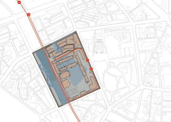 「城市裡的牆」 象徵著邊界與保護,延伸堤防的破口並從新串連這些牆體