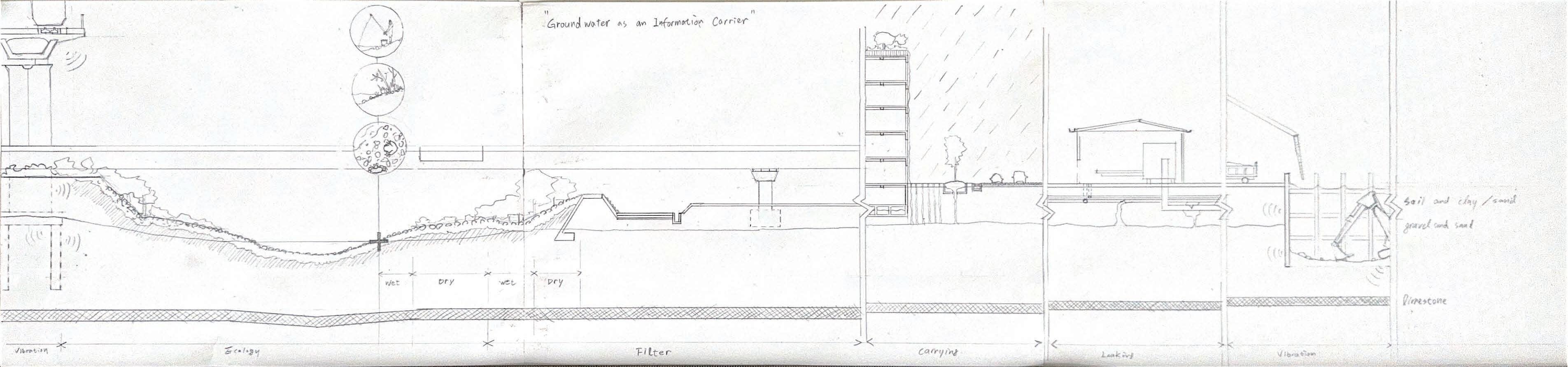 現代城市基礎設施邏輯追求快速排洪,不同的高 層與牆被用於抵擋,城市用土木工程抵抗不確定 ,達到「保護」的目的。而這也導致土地意識的 斷聯。我們不再了解這塊地原本的樣子,它的根 被脫節。我們失去了與這片會定期氾濫的土地共 存的歷史記憶和方式。