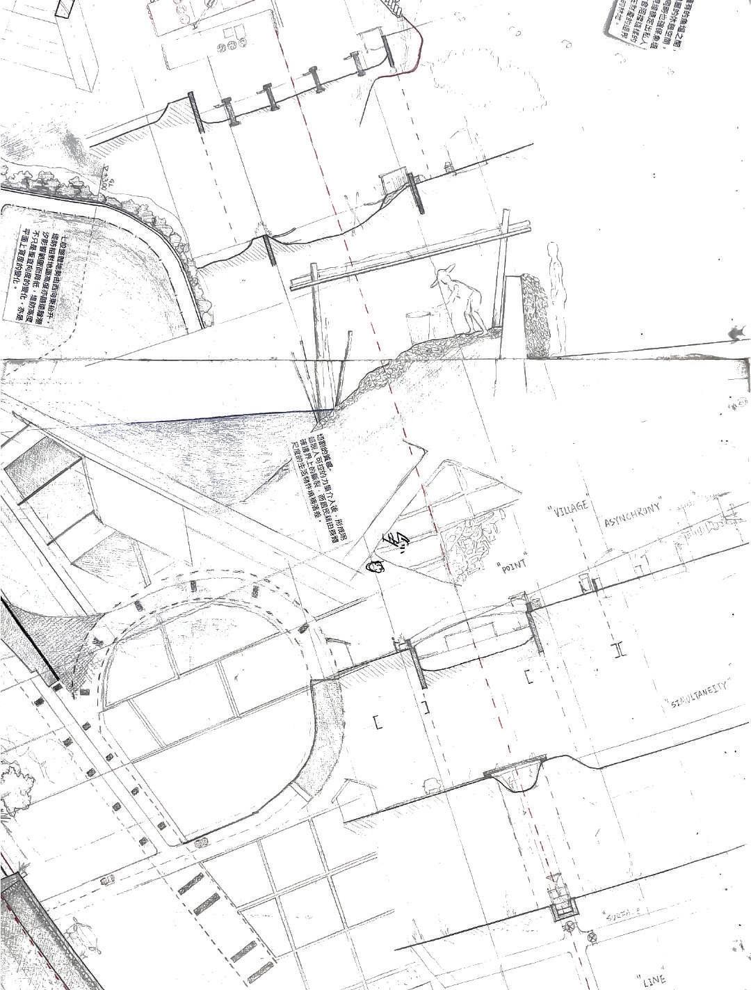 「浸埕」提出一種相較於快速排洪的「漫水體系 」新分類也是對現代城市基礎設施邏輯的溫柔解 構:牆不是為了抵擋,而是為了停留。透過堤防 的刻意破口;一種制度性結構的鬆動,成為組織