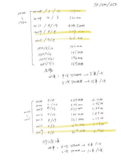 淹水深0.5m-1.0m, 500mm/24hr