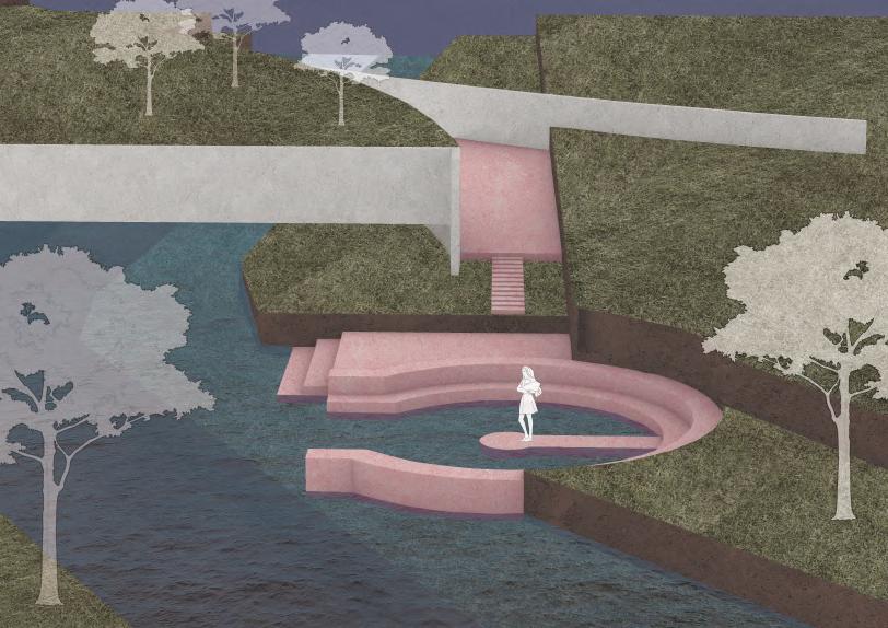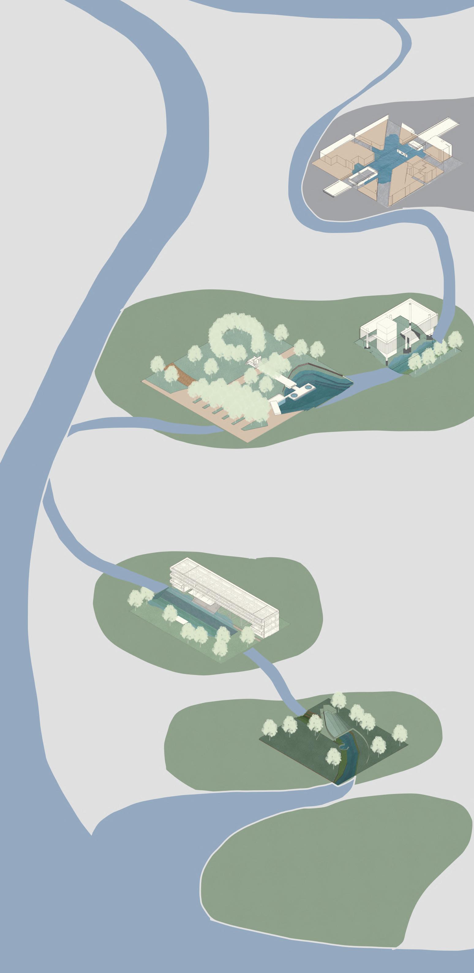 The city no longer resists uncertainty through structure, but nvites it through form. It becomes not a vessel for drainage, but a space where water can stay, be felt, and be part of. This is also a territorial strategy, a riverside prototype that reimagines water’s presence as a question of protection, land, and public life: