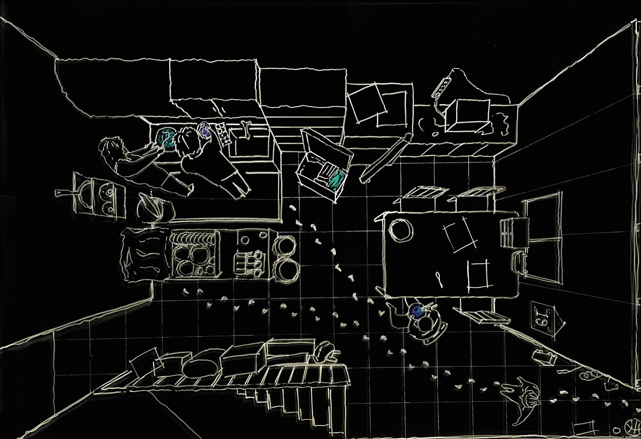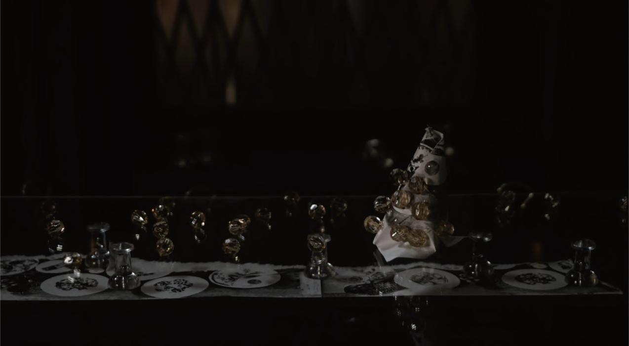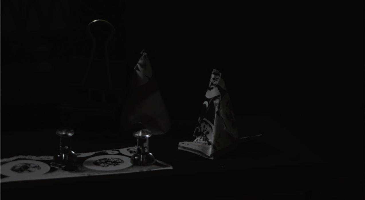 回憶童年在黑暗中吃晚餐的經驗,偶然的事件改變了日常用餐的狀態,幽暗的環境使熟悉的工作變得異常, 事與物開始分離,視線的缺乏卻讓食物與用具的質感被凸顯。