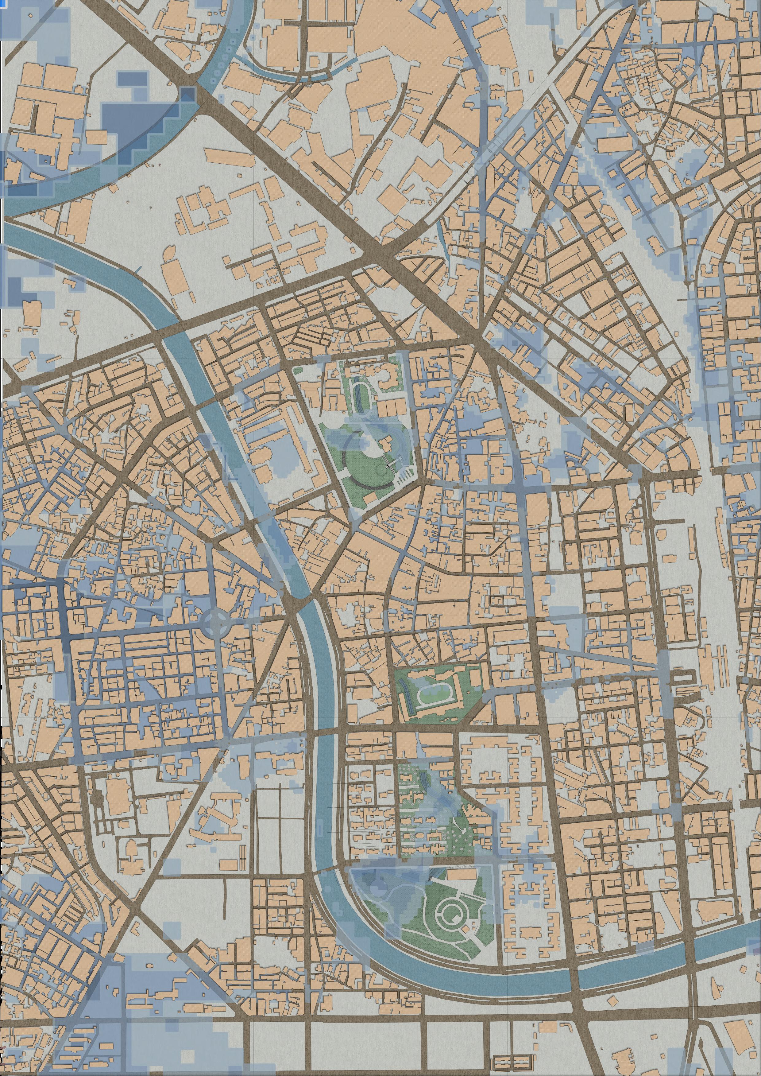 Every fifteen years, the old river reveals itself on the surface. Heavy rain becomes a landscape event of memory, reminding us of the land’s original rhythm and contours. Flooding may not be a failure of infrastructure, but rather an expression of the land’s character and the traces beneath it.