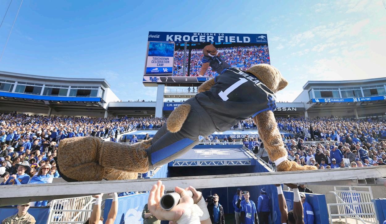 Wildcat, the beloved UK mascot, is a welltrained member of the UK Cheerleading Team. But what you see isn’t all you get with Wildcat.