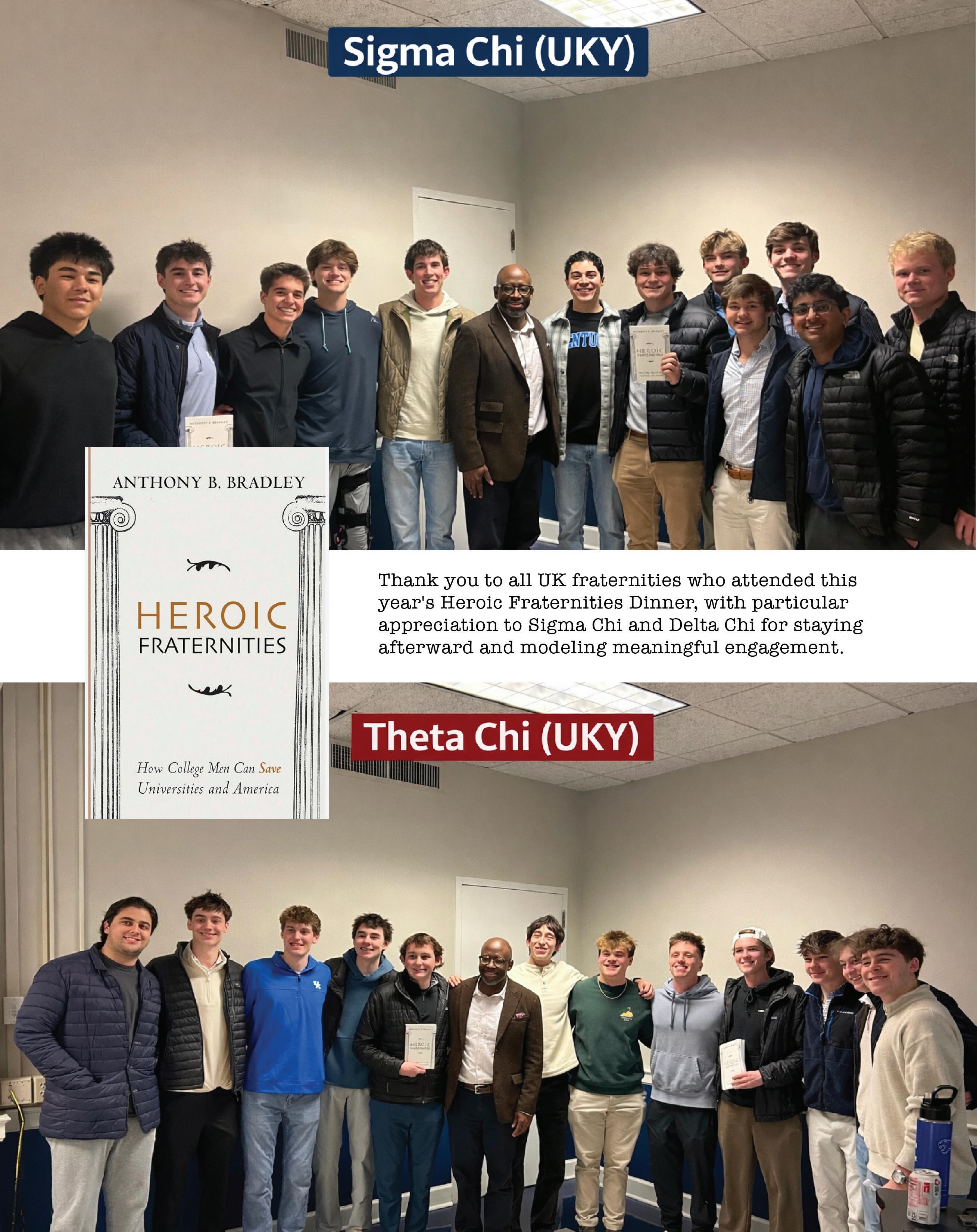 Thank you to all UK fraternities who attended this year’s Heroic Fraternities Dinner, with particular appreciation to Sigma Chi and Theta Chi for staying afterward and modeling meaningful engagement.
