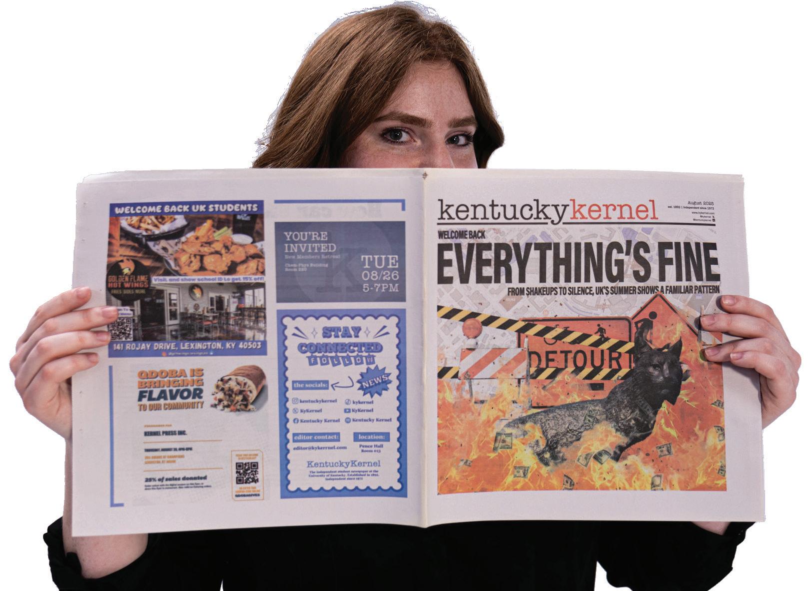 Across decades of a continuallyshifting campus and generations of learners, the Kentucky Kernel has lived in the hands of University of K entucky students, accompanying each daily edition was the familiar weight of crisp pages and scent of fresh ink.
