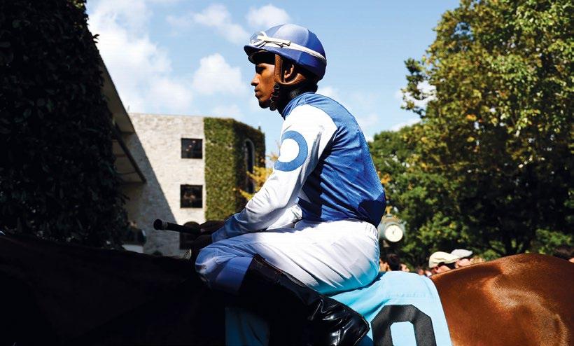 Richard Santana Jr. aboard Loveland walks toward the track on the opening day of the Fall Meet at Keeneland.