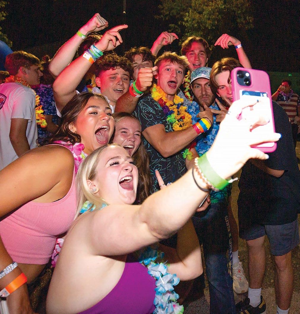 A group of students take a selfie during the Christian Student Fellowship Luau at the Lewis House in Lexington, Kentucky.