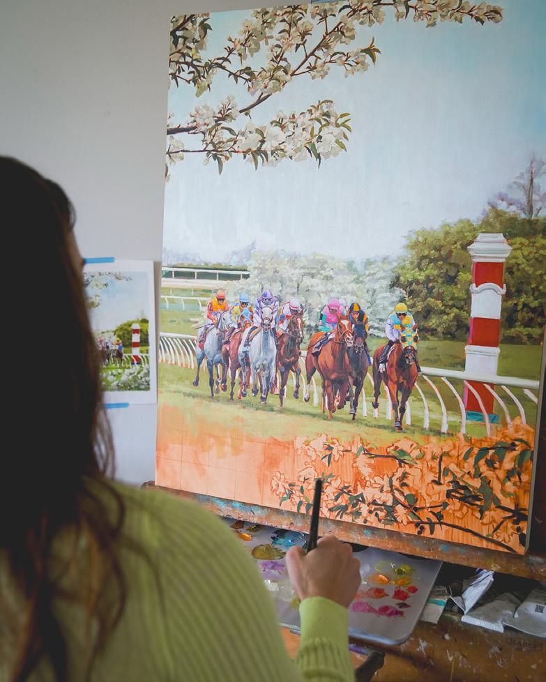 The finished product is outstanding. The Lexington artist typically paints with a palette knife and her fingers to create stunning art featuring animals, landscapes and flowers.