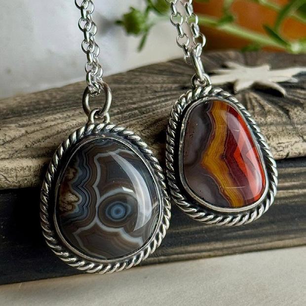 Artist Jarod Cox says his jewelry is inspired by the rugged beauty and rich heritage of Appalachia. Many of the stones in his pieces, such as agate and quartz, are found near his Pulaski County home.