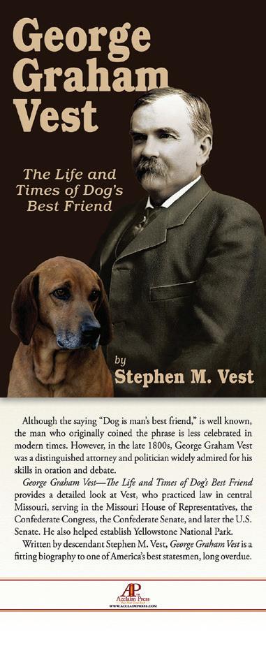 Kentucky Monthly Publisher and Editorin-Chief Stephen M. Vest released his latest book, George Graham Vest: The Life and Times of Dog’s Best Friend, in October 2024. The author of three previous books, Stephen Vest focuses on the life of his distant relative, who is credited with coining the phrase “Dog is man’s best friend.” Born in Frankfort, George Graham Vest later moved to Missouri, where he practiced law and became a distinguished politician, serving in the Missouri House of Representatives, Confederate Congress, Confederate Senate and, later, the U.S. Senate.
