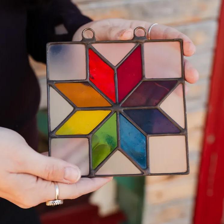 The only thing better than sunshine streaming through a window is when it is flowing through stained glass. These stunning suncatchers are produced by Hannah Grant in her home studio in Nancy. Inspired by quilt squares, they are a colorful addition to any room.