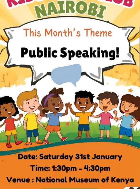 Public Speaking for Kids: National Museums of Kenya, 31st January, 1.30 pm. Africa Kids Book Club will be helping children build confidence through self-expression in a supportive space.