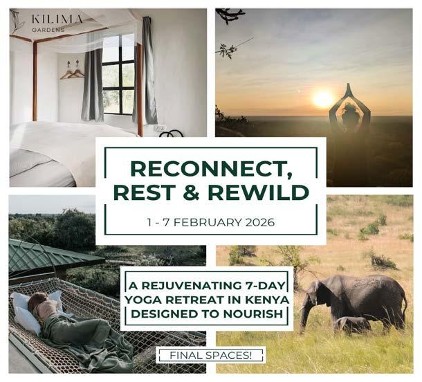 Reconnect, Rest & Rewild: Kilima Gardens, 1st -7th February. Escape to the foothills of Mount Kenya for a transformative 7-day retreat designed to help you reconnect, rest and rewild.