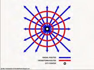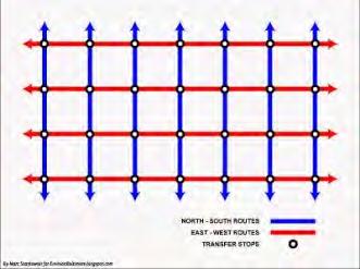 The City’s approach to transit can be defned by a shift from the traditional hub and spoke model to a grid model, aimed at enhancing frequency and connectivity across the City.