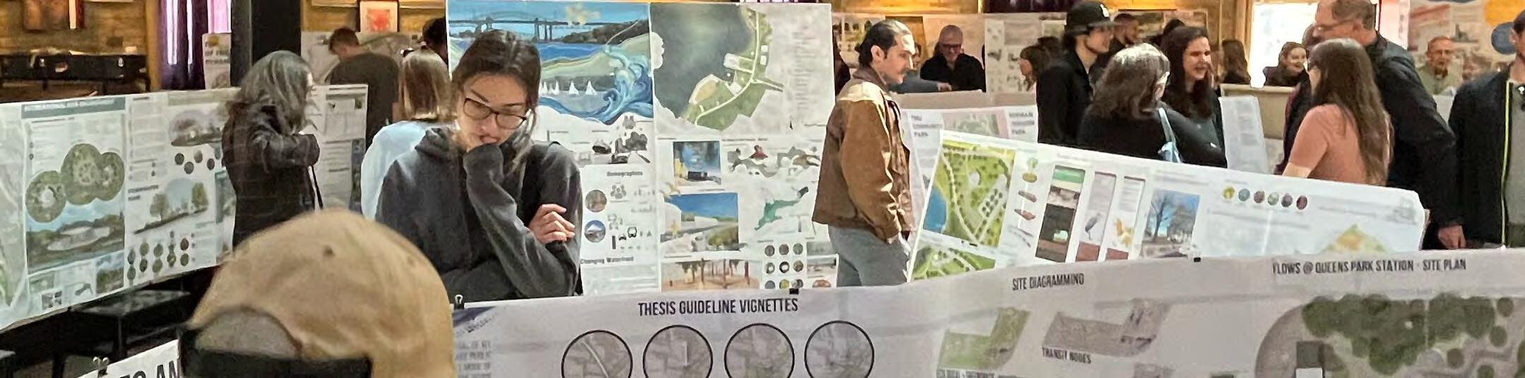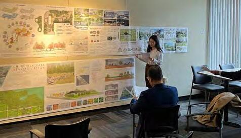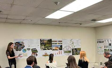 Simultaneously, I have taken on the role of a teaching assistant and guest reviewer for senior landscape architecture students in the BLA and MLA programs. Guiding senior design students through the creative process has been incredibly fulflling. I have been able to use many of my interactions over the three semesters as TA and guest reviewer to foster student interest for local community building before they head into the workforce. With the undergraduate and graduate students, we have examined sites like Niska and discussed strategies to bring in tactical improvements for traffc calming and speed reductions. We also delved into discussions about natural rehabilitation and cost-effective ways to balance recreational and commercial interests, while examining the dynamics between the community, city staff, and intergovernmental actors involved with planning.