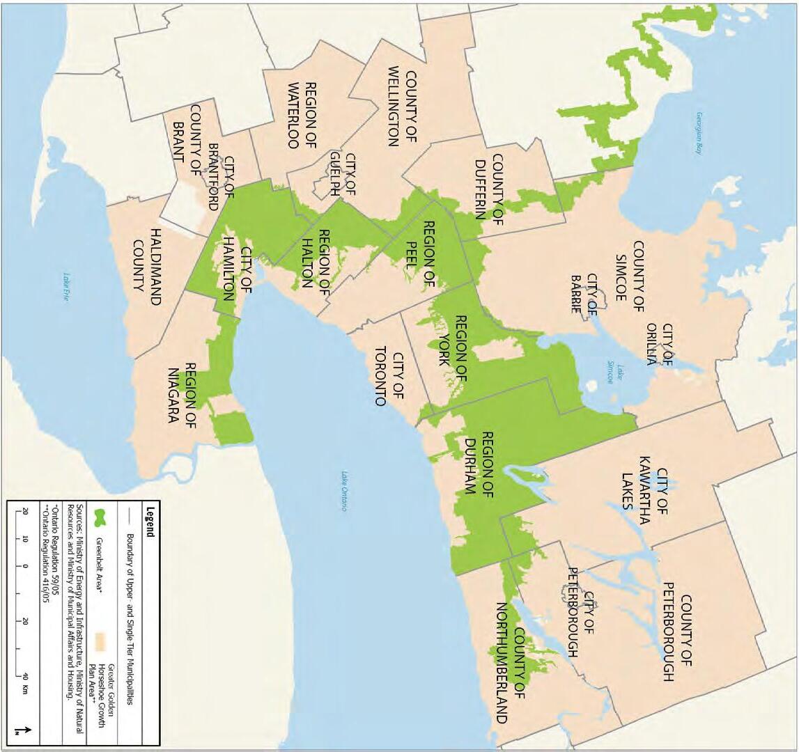 Guelph in proximity to the Greenbelt and Greater Golden Horseshoe. (Chew, 2022)