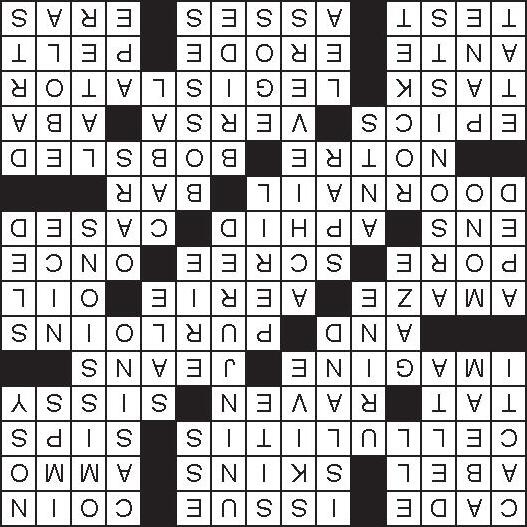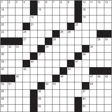 38. One single time 39. N N N 40. Plant louse 41. Enclosed 42. Epitome of deadness 44. Tavern 45. French for “Our” 46. Long racing sled 50. Long stories 52. Contrariwise