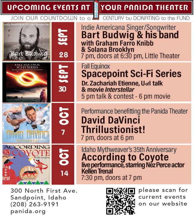 Thursday, Sept. 28; doors at 6:30 p.m., show at 7 p.m.; $13.50. Little Panida Theater, 300 N. First Ave., 208-263-9191. Buy tickets at panida.org and listen to Budwig’s music at bartbudwig.com.