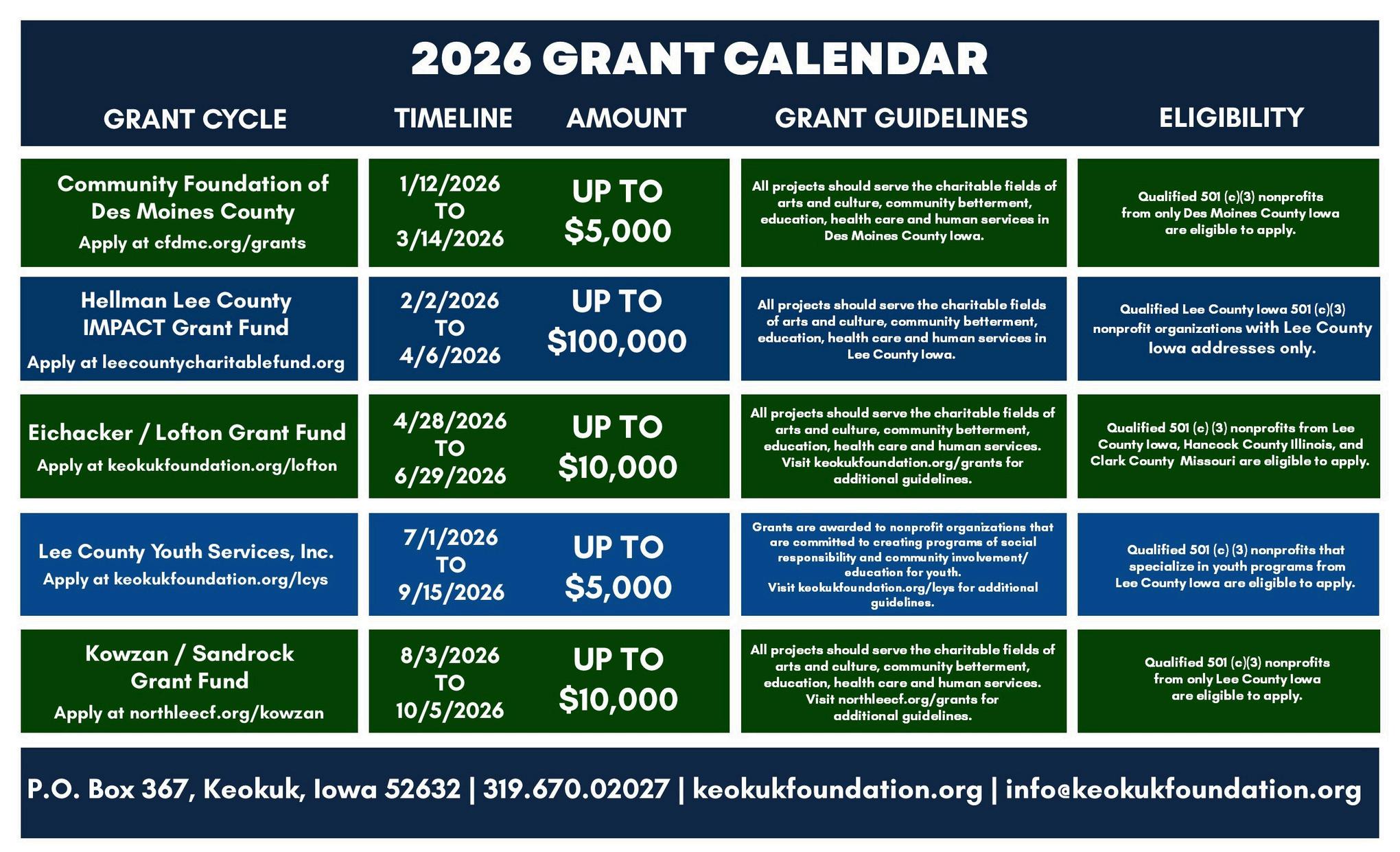 Final approval by The Keokuk Area Community Foundation, North Lee Community Foundation and Lee County Charitable Fund Board of Directors.