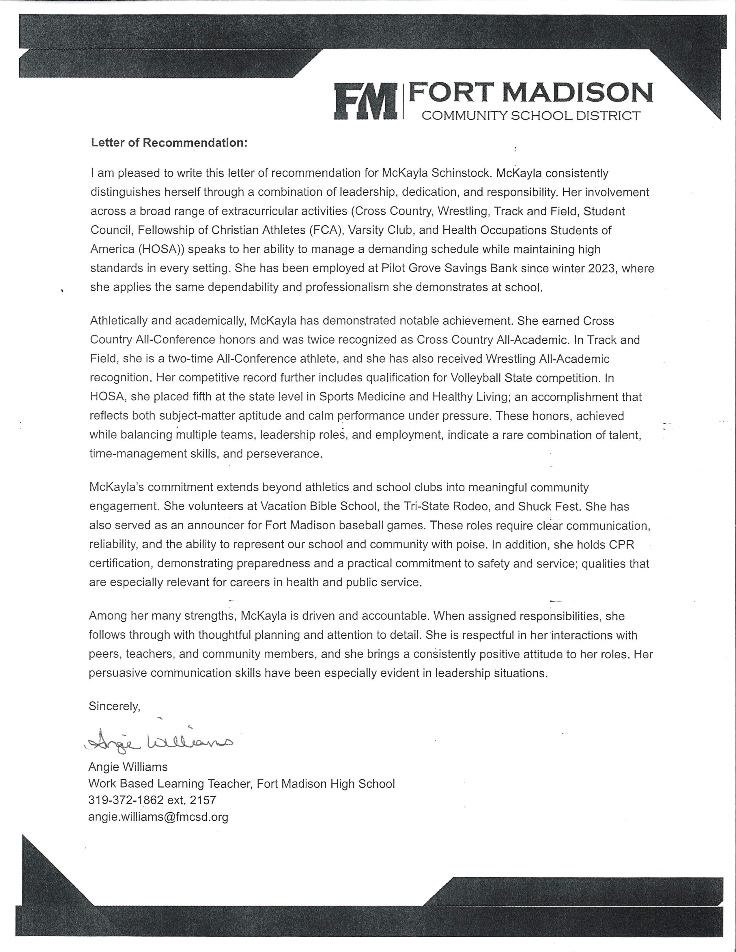 Activity #2: I have been involved in HOSA (Health Occupations Students of America) for two years, usually for one to two hours per week throughout the school year. This year, I was voted to be the Media Manager, where I help promote events and updates with our members and our community. During my time in HOSA I earned two medals at the state HOSA conference in Des Moines. Being part of HOSA has helped me develop skills of involvement and gave me a better understanding of the healthcare field. It also showed me the impor tance of communication with the people around you.