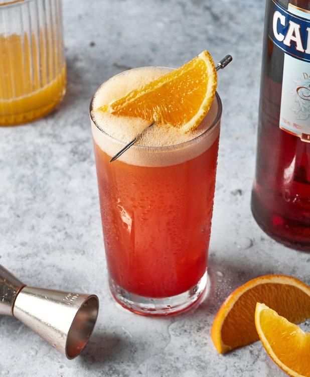 At New York and LA’s Dante, they have turned the Classic Garibaldi cocktail (Campari and Orange Juice) into an instant success, just by tweaking one key ingredient, the orange juice, turning it into “fluffy orange juice.” Achieved by using a highspeed Breville juicer, the resulting OJ is extra aerated giving it a light, frothy texture. The texture of the “fluffy” juice reminds me of one of my childhood favorites, the Orange Julius. It is also possible to achieve a similar frothiness via a regular blender, immersion blender, or even a handheld milk frother.