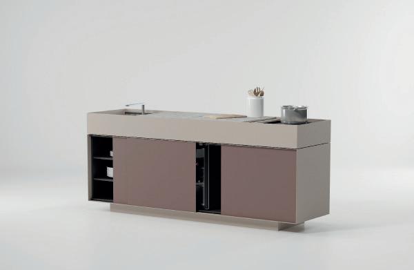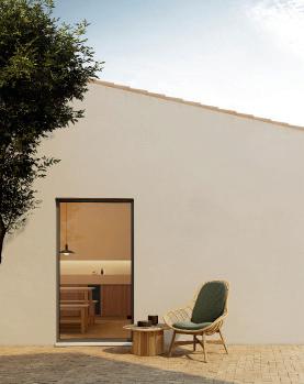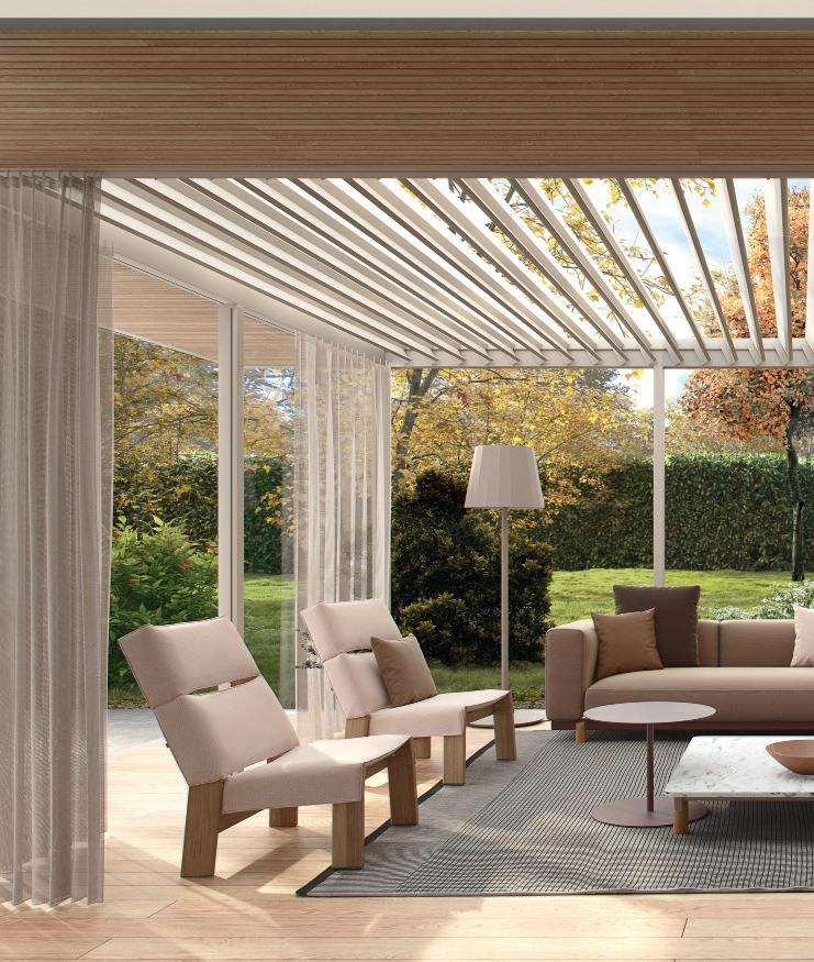 The open areas between the columns can be assembled with various facings: glass, louvers to adjust the light, curtains, solid stoneware panels, cupboards, cooker, fireplace... to furnish a space that is customised to the client’s specifications.