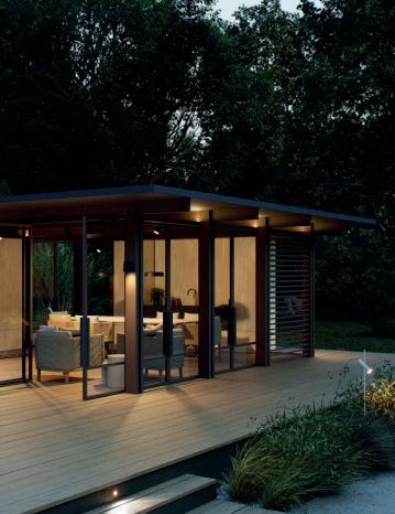 V Pavilion is inspired by 1950s American modernism, which summarised a more industrial trend of thought based on new and innovative building technologies and on Functionalism, emphasising open-plan, multifunctional spaces that are flexible and easily adapted and modified for any lifestyle or environment.