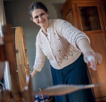 In haar atelier staan moderne spinnenwielen, maar het liefst werkt ze op het klassieke wiel dat in haar woonkamer staat. Ze geeft een demonstratie. Soepel laat ze de wol door haar vingers glijden, terwijl ze het wiel laat draaien. Langzaam ontstaat een klos van dunne draad. ‘Het is niet eenvoudig, maar iedereen kan het leren’, zegt ze.