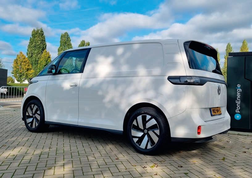 Naast de veelbelovende looks, scoort de ID.Buzz ook punten qua rijbeleving. Een laag zwaartepunt gecombineerd met achterwiel aandrijving en een korte draaicirkel van slechts 11,09 meter resulteren in een rotsvaste wegligging. Met een vermogen van 204 pk/150 kW en 310 Nm aan direct beschikbaar koppel levert de elektromotor van de ID. Buzz Cargo uitstekende prestaties, ook voor de wat zwaar dere klussen. Uiteraard zit je lekker hoog op de bok en pro fiteer je achter het stuur van een bijna panoramisch uitzicht. Het dashboard is keurig afgewerkt en voorzien van een aantal digitale displays die lekker eenvoudig zijn te bedienen. Je voelt je daarom al heel snel thuis op deze werkplek. Hoewel de ID.Buzz standaard al heel compleet is, kan je hem volledig ‘op smaak’ brengen met talloze opties. Zelfs historisch verantwoorde ‘twotone’ kleurstellingen zijn leverbaar waardoor de ver bintenis met het aloude T1 busje nog eens wordt benadrukt!