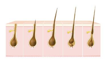 O crescimento do cabelo ocorre em um ciclo contínuo composto por três fases: