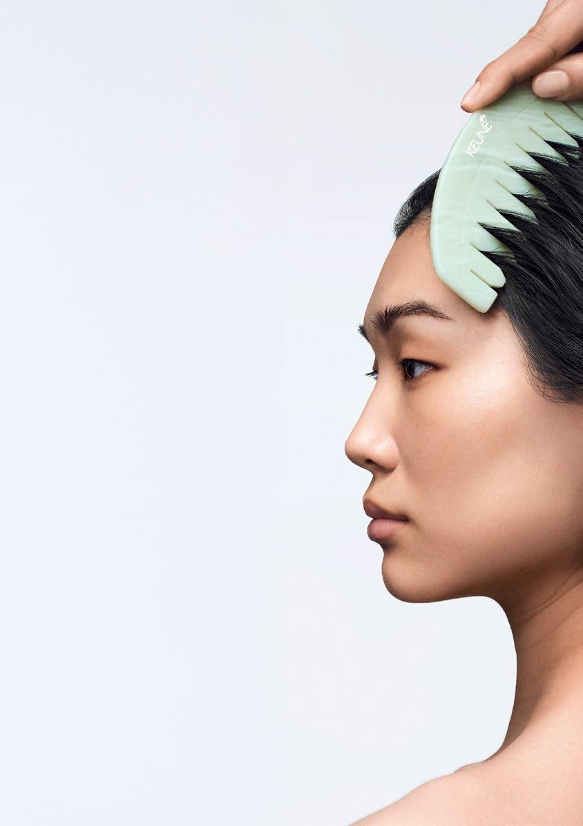 A linha Keune Care conta com 48 produtos organizados em 15 prescrições direcionadas, permitindo a construção de rotinas altamente personalizadas para diferentes condições e tipos capilares.