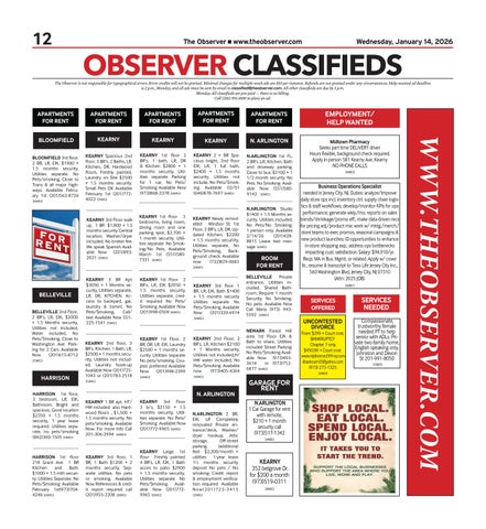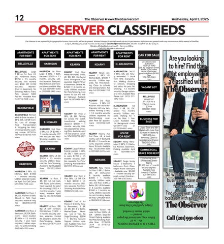 The Observer newspaper has operated continuously since May 14, 1887. It covers the towns of Kearny, Harrison, East Newark, North Arlington, Lyndhurst, Nutley, Belleville & Bloomfield.