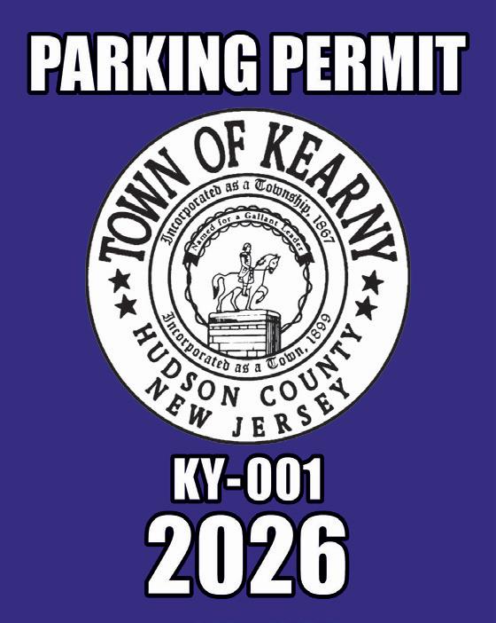 ALL APPLICATIONS MUST BE ACCOMPANIED BY A COPY OF A VALID DRIVER’S LICENSE, VEHICLE INSURANCE AND REGISTRATION CARD PERMIT VALID FOR TOWN OF KEARNY ONLY TOWN ORDINANCE 7-32