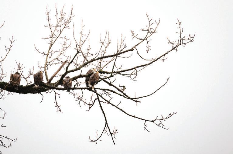 winter to follow the salmon. A Harrison Eco Tours boat drifts through the mist, guides pointing out wings above and flashes of silver below. You don’t plan on saying “wow,” but you do anyway.