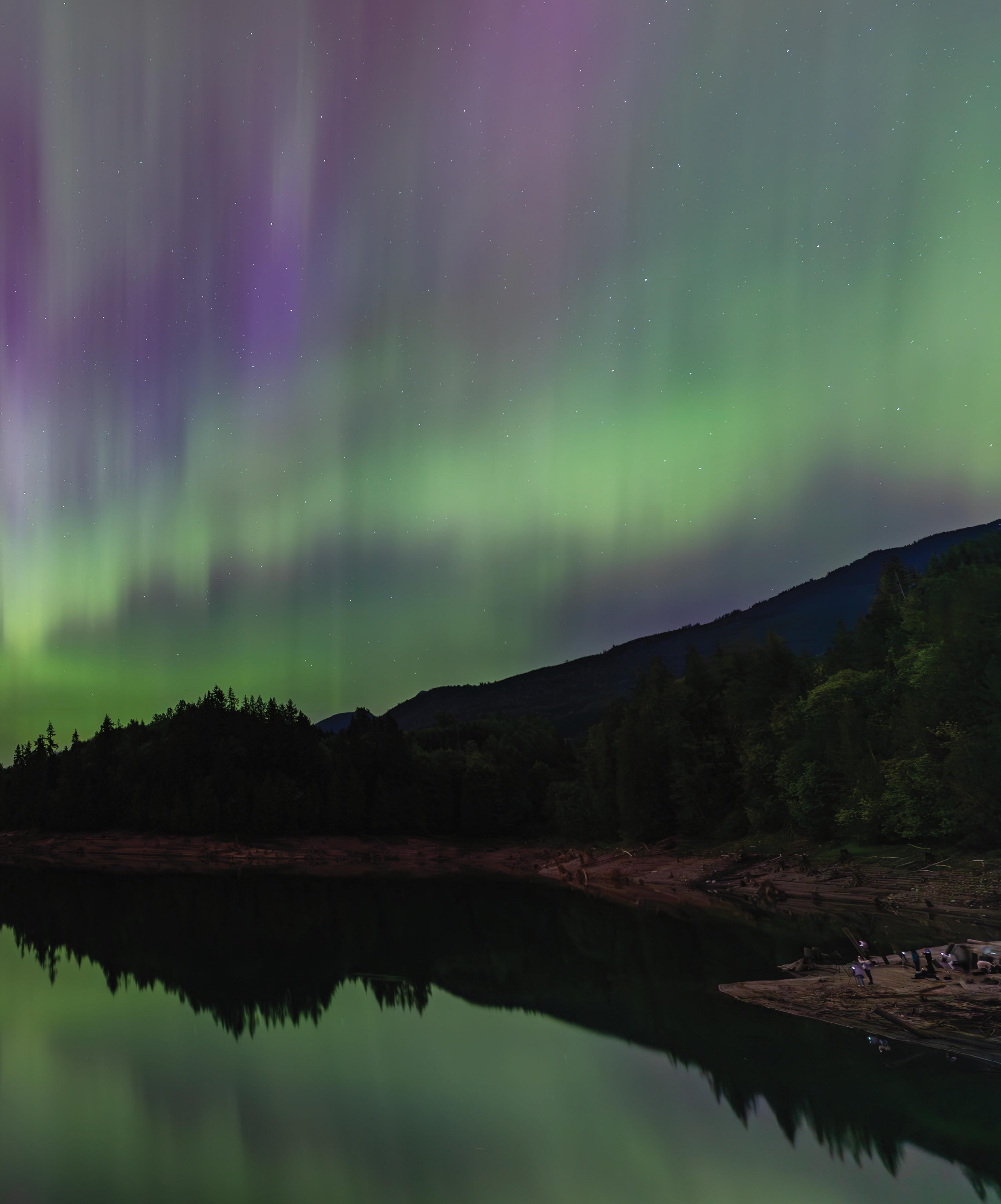 Discover Washington’s best locations to witness the magical aurora borealis. Patience and a thermos are all you need. wri en by Ryn Pfeu er