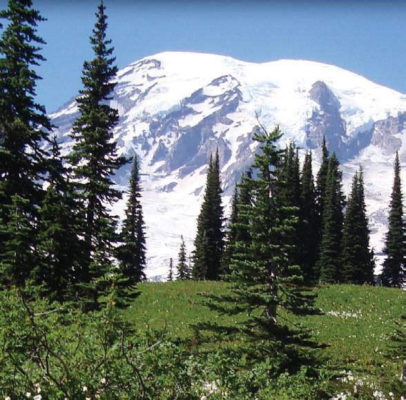 Rainier Guest Services is the entity that includes the majesty of Mount Rainier, its recreation and lodging. ink 236,000 acres of national forest inlaid with trails that go on for hundreds of miles. Fall is Mount Rainier’s finest season for hiking. Try the Nisqually Vista Trail from Paradise Lodge, a 1.2-mile loop with stunning views. Don’t miss Skyline Trail for a more challenging 5.5-mile loop. Or Naches Peak Loop, a 3.5-mile stunner that may offer late summer glimpses of wildflowers. History and lodging come together at Rainier. Paradise Inn was built in 1917 and sits grandly at 5,420 feet. It closes in October when snow makes it difficult to approach. National Park Inn, open year round, was built in 1926 and, with twenty-five guest rooms, is