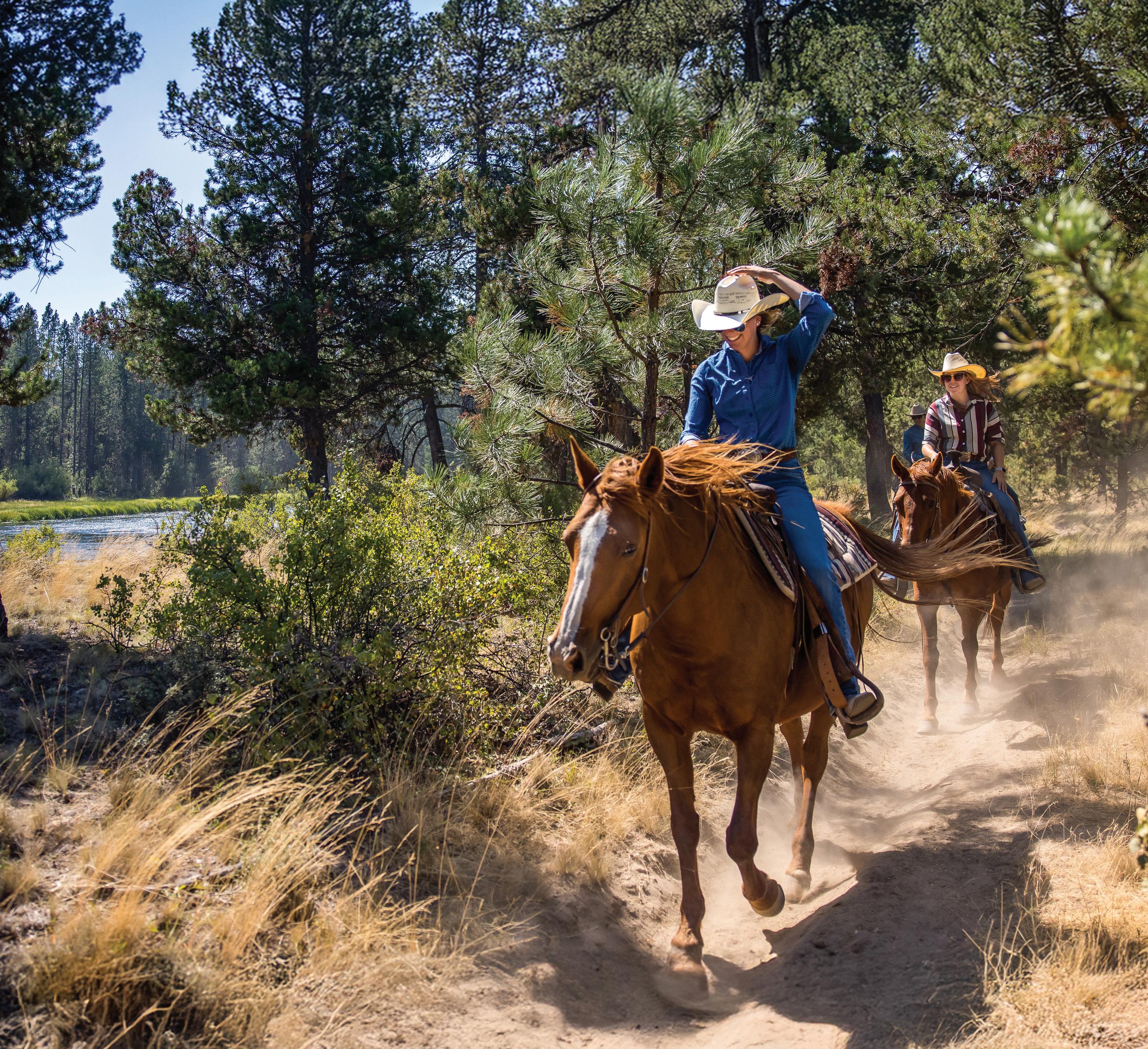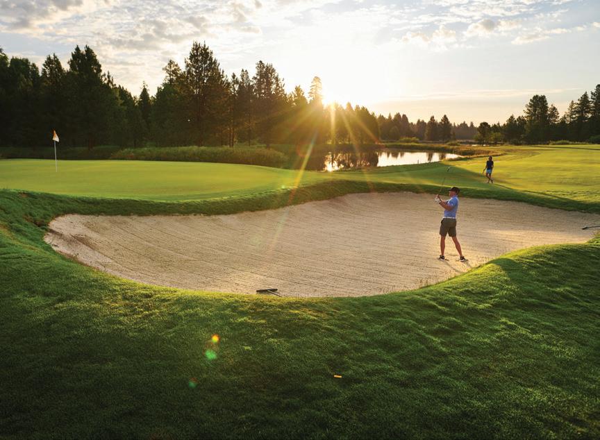 In the fall warmth of Central Oregon’s high desert, for example, Black Butte Ranch has many ways to lose yourself in the outdoors. Hiking trails around the ranch are attainable for most visitors. e signature hike up the namesake butte, Black Butte, is a 4-mile out-and-back that gains 1,600 feet and can take two to four hours, depending on if you’re stopping to smell the manzanita. If you prefer a lot of grass and well-manicured grass, jump on one of the resort’s two eighteen-hole golf courses. Big Meadow is a challenging course designed by Robert Muir Graves. e other course, Glaze Meadow, was redesigned by John Fought and is known for its large greens. Don’t forget to book time for the alternative nineteenth hole—the Spa at Black Butte Ranch, located inside the Glaze Meadow Recreation Center.