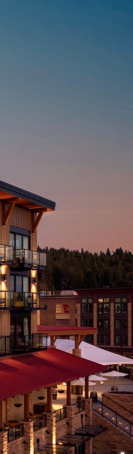 Thankfully, resorts in the Pacific Northwest have raised touching the grass to an art form over the years. Whether via hikes that wind through the Cascades, waterfalls that cascade down hundreds of feet, beaches that stretch for miles or mountain vistas that seemingly appear out of nowhere, PNW resorts o er many di erent ways to unplug and reconnect.