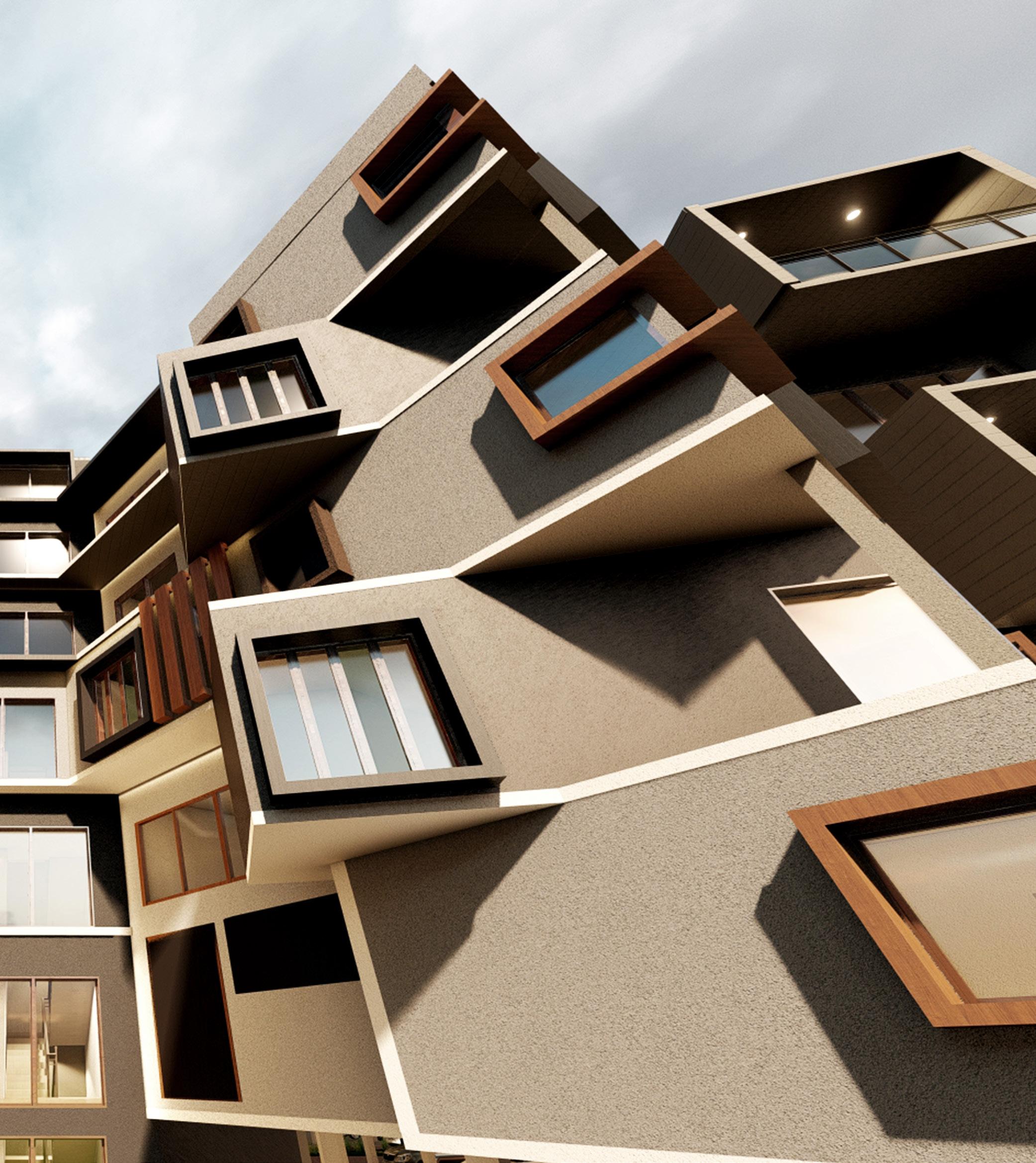 Creating a form with increase in multiple faces to facilitate maximum natural light into the building. Twisted in an axis, creating a spatial demarcation along the exterior where light and shade is experienced dynamically.