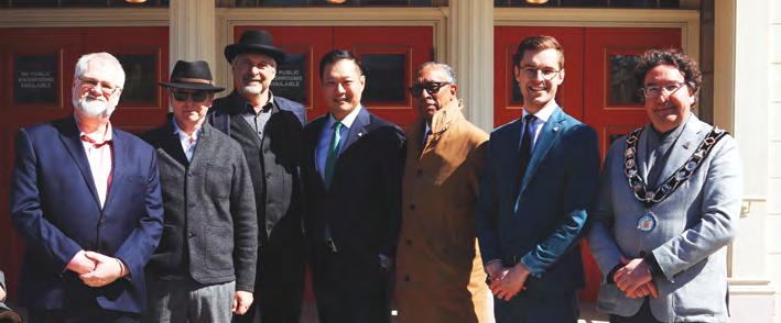 Left to right in the above photo: Tim Jennings, Tim Carroll, Deputy Lord Mayor Erwin Wiens, Minister Stan Cho, Chair Ian Joseph, Hon. Sam Oosterhoff, Lord Mayor Gary Zalepa