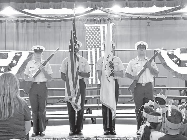 Asea of American flags waved on Nov. 10 in the Stanley Switlik Elementary School cafeteria as the school hon ored veterans, first responders and our country with its annual Red, White and Blue Day celebration. Along with musical performances by each grade and student essays thanking those who risk their lives to keep us safe, the day included an address from state attorney Dennis Ward and a sing-along rendition of “God Bless the USA” from then-Marathon Mayor John Bartus. — Alex Rickert 1. Switlik kindergarteners open the musi cal performances with ‘You’re a Grand Old Flag.’ 2. The United States Coast Guard color guard posts the colors. 3. Then-Marathon Mayor John Bartus leads ‘God Bless the USA.’ 4. Student council vice president Adri ana Dworniczak, left, and president Ava Samess emcee the morning.